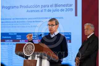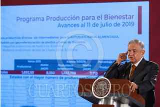 CIUDAD DE MÉXICO, 11JULIO2019.- Andrés Manuel López Obrador, presidente de México, durante la conferencia de prensa matutina para informar los avances en materia de apoyos económicas y los “Programas de Producción para el Desarrollo” a pequeños productores de la industria agropecuaria. Al final de la conferencia, el jefe de ejecutivo fue cuestionado sobre el caso de la agencia Notimex y de las reacciones de su directora Sanjuana Martínez en diversas redes sociales, a lo que sólo contesto que llamaba a la reconciliación y afirmó que invitará a la funcionaria a explicar las razones de sus actos. FOTO: GALO CAÑAS /CUARTOSCURO.COM