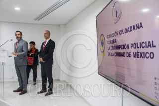 CIUDAD DE MÉXICO, 11JULIO2019.- La Fiscal Ernestina Godoy, Jesús Ortá, de la SSC y Salvador Guerrero Chiprés, en la conferencia de prensa, donde anunciaron la creación de la Comisión Ciudadana Contra la Corrupción Policial en la Ciudad de México. FOTO: VICTORIA VALTIERRA /CUARTOSCURO.COM
