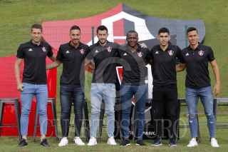 GUADALAJARA, JALISCO, 11JULIO2019.- Esta mañana en las instalaciones del Club Atlas Colomos directivos de la institución realizaron la presentación de los nuevos refuerzos del equipo, entre los que destacan en central argentino Martin Nervo, el delantero argentino Javier Correa, el portero colombiano Camilo Vargas, el lateral colombiano Mauricio Cuero, el lateral mexicano Jesús Angulo y el delantero ecuatoriano Manuel Balda, respectivamente de ( I-D ) en la fotografía general. FOTO: FERNANDO CARRANZA GARCIA / CUARTOSCURO.COM