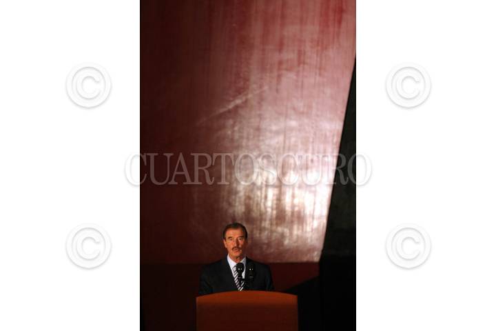 MEXICO, D.F., 09JUNIO2005.- Vicente Fox Quesada, presidente de la República y José Luis Barraza, presidente de la COPARMEX, clausurarn la Celebración del Pacto Mundial en México, en el Polyforum Siquieros. FOTO: Moisés Pablo/CUARTOSCURO.COM