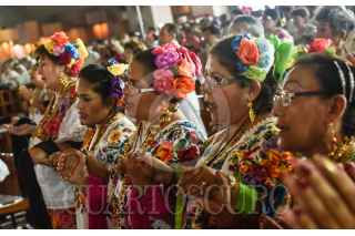 CIUDAD DE MÉXICO, 12JULIO2019.- Decenas de peregrinos orginarios de Yucatán, acudieron este viernes a la Basílica de Guadalupe para presenciar la "Misa del Yucateco" oficiada por el obispo Gustavo Rodríguez. FOTO: MARIO JASSO /CUARTOSCURO.COM