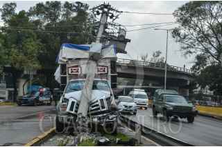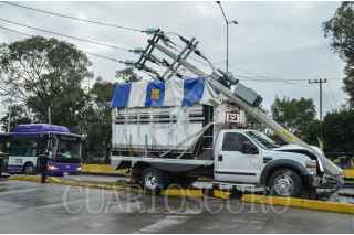 CIUDAD DE MÉXICO, 12JULIO2019.- Una camioneta de con carga de tres toneladas y media se impactó contra un poste el cual sostenía un transformador de luz. Los hechos ocurrieron en calzada Miramontes y Rio Churubusco colonia Prados en la alcaldía Coyoacán. FOTO: ARMANDO MONROY /CUARTOSCURO.COM