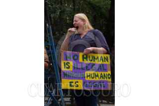 CIUDAD DE MÉXICO, 12JULIO2019.-Estadounidenses, algunos miembros del Partido Demócrata se manifestaron en una vigilia iluminada con velas en protesta contra las deportaciones de indocumentados, por el ICE, frente a la embajada de los Estados Unidos. FOTO: ROGELIO MORALES /CUARTOSCURO.COM