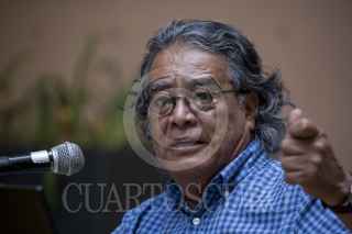 TIJUANA, BAJA CALIFORNIA, 12JULIO2019.- Pedro Valtierra, fotoperiodista y director de la agencia Cuartoscuro durante la conferencia realizada en el Centro Cultural TIjuana (Cecut), en el marco de su exposición Testigo, en la que habló sobre su experiencia como fotógrafo. FOTO: OMAR MARTÍNEZ /CUARTOSCURO.COM