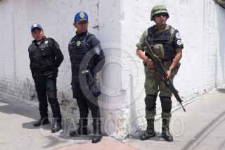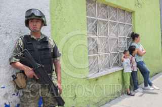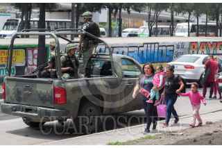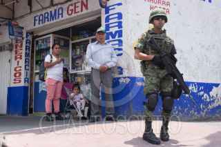 CIUDAD DE MÉXICO, 13JULIO2019.- Elementos de la Guardia Nacional desplegaron esta tarde en la calle 7, esquina Bordo de Xochiaca, alcaldía Venustiano Carranza. FOTO: GRACIELA LÓPEZ /CUARTOSCURO.COM
