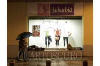 CIUDAD DE MÉXICO, 14JULIO2019.- Dos personas en situación vulnerable, se protegen de la lluvia y duermen frente un aparador de una tienda departamental en el Centro Histórico. FOTO: ROGELIO MORALES /CUARTOSCURO.COM