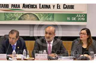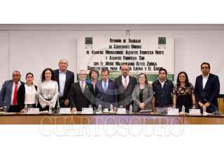 CIUDAD DE MÉXICO, 15JULIO2019.- El diputado Raúl Bonifaz Moedano; Porfirio Muñoz Ledo, presidente de la mesa directiva en la Cámara de Diputados; Maximiliano Reyes Zuñiga, subsecretario para América Latina y el Caribe y la diputada Julieta Vences Valencia, durante la reunión de asuntos migratorios, asuntos Frontera Norte y asuntos Frontera Sur, la cual fue relaizada en la Cámara de Diputados. FOTO: CUARTOSCURO.COM