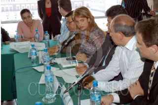 MEXICO, D.F. 10JUNIO2005.- Fadlala Akabani Hneide delegado de Benito Juárez, Victor Hugo Cirigo delegado de Iztapalapa, Lorena Villavicencio coordinadora de la bancada perredista en la asamblea del DF, el presidente de la comisión de gobierno Carlos Reyez Gamíz durante la reunión de delegados del DF con la comisión de gobierno de la asamble legislativa. FOTO: Miguel Dimayuga/CUARTOSCURO.COM