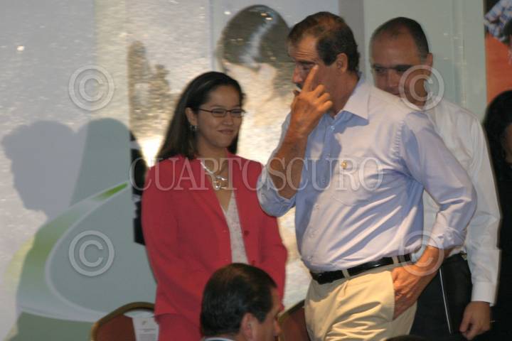 MEXICO, D.F. 10JUNIO2005.- El presidente Vicente Fox carga a una niña y se despide de mujeres asistentes al II Encuentro Nacional de Empresarias Sociales FONAES 2005. FOTO: Nelly Salas/CUARTOSCURO.COM