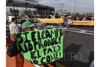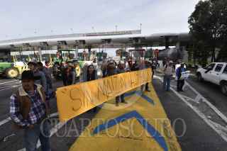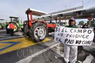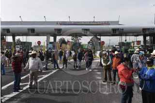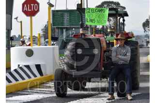 TOLUCA, ESTADO DE MÉXICO, 17JULIO2019.- Productores agrícolas bloquearon la caseta de la autopista Toluca-Atlacomulco “El Dorado” como parte de la movilización nacional para exigir mayor apoyo al campo, dejaron libres un carril de salida y entrada a la cuidad, sin cobrar peaje; colocaron tractores en cada uno de los carriles de las casetas de cobro. FOTO: CRISANTA ESPINOSA AGUILAR /CUARTOSCURO.COM