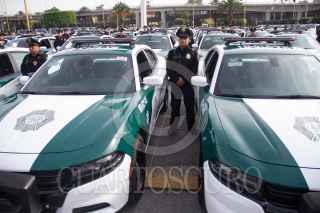 CIUDAD DE MÉXICO, 17JULIO2019.- En la explanada de la alcaldía de Venustiano Carranza, la jefa del gobierno de la Ciudad, Claudia Sheinbaum Pardo, entrego patrullas a esta demarcación. La acompaño, la fiscal Ernestina Godoy, Jesús Orta, Rosa Isela Rodríguez y el alcalde Julio Cesar Moreno. FOTO: VICTORIA VALTIERRA /CUARTOSCURO.COM