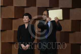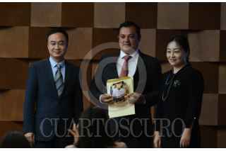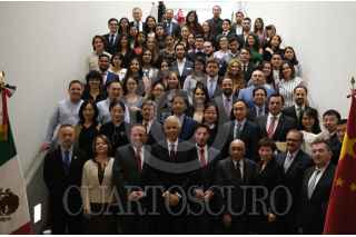 CIUDAD DE MÉXICO, 17JULIO2019.- Gu Jiangzhen, decano Harbin Institute of Technology; Claudia Franco Huellos, directora General para Asia Pacífico; Alberto Uribe Camacho, director general de Coordinación Política; Julián Ventura Valero, subsecretario de Relaciones Exteriores; Andrés Díaz Bedolla, director general para América Latina de China; Yang Jingsi, representante del Concurso de Universidades China campus Network y Gustavo Cabrera Rodríguez, director general de Cooperación Técnica y Científica de AMEXICO, se tomaron una fotografía con los ganadores del Proyecto de Entrenamiento de Talento a través de Becas para el Diseño de Estrategias de Cooperación Bilateral México-China al término de la ceremonia realizada en el Salón José María Morelos y Pavón de la Secretaría de Relaciones Exteriores. FOTO: GRACIELA LÓPEZ /CUARTOSCURO.COM