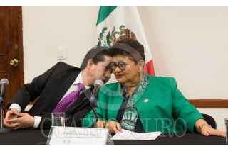 CIUDAD DE MÉXICO, 18JULIO2019.- Rodrigo de la Riva Robles, subprocurador de averiguaciones previas centrales; Ernestina Godoy, procuradora General de Justicia de la Ciudad de México, y Omar García Harfuch, jefe general de la Policía de Investigación, ofrecieron una rueda de prensa para dar detalles sobre la detención de cuatro presuntos implicados en el asesinado y homicidio del joven Norberto Ronquillo. FOTO: MOISÉS PABLO /CUARTOSCURO.COM