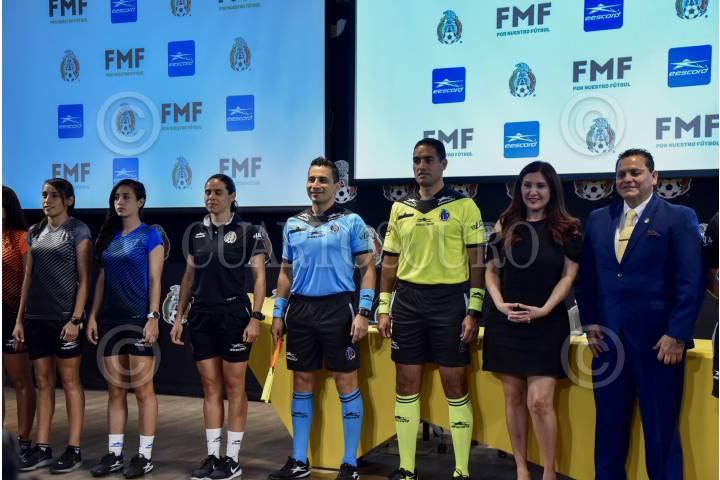 TOLUCA, ESTADO DE MÉXICO, 18JULIO2019.- Beatriz Ramos, Directora de Comunicación e Imagen de FMF Y Víctor Manuel Torres Presidente de Grupo Eescord dieron a conocer el patrocinio de esta marca y la nueva línea de de uniformes que vestirán los árbitros. FOTO: CRISANTA ESPINOSA AGUILAR /CUARTOSCURO.COM
