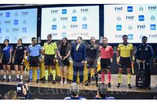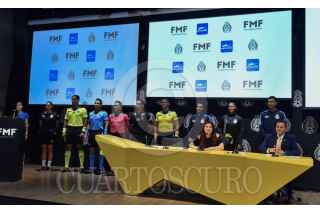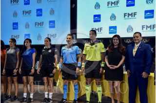 TOLUCA, ESTADO DE MÉXICO, 18JULIO2019.- Beatriz Ramos, Directora de Comunicación e Imagen de FMF Y Víctor Manuel Torres Presidente de Grupo Eescord dieron a conocer el patrocinio de esta marca y la nueva línea de de uniformes que vestirán los árbitros. FOTO: CRISANTA ESPINOSA AGUILAR /CUARTOSCURO.COM