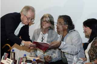 CIUDAD DE MÉXICO, 18JULIO2019.- Pedro Valtierra, fotoperiodista y director de la Agencia Cuartoscuro, en compañía de Adriana Malvido y Rebeca Monroy Nasr, presentó el libro “Nicaragua, la Revolución Sandinista: Una crónica fotográfica”, realizado en Centro de la Imagen. FOTO: MARIO JASSO /CUARTOSCURO.COM