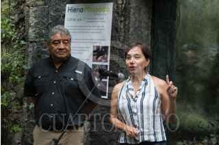 CIUDAD DE MÉXICO, 19JULIO2019.- Fueron presentadas en el Zoológico del Bosque de Chapultepec, las dos nuevas hienas que nacieron en abril, una hembra con el nombre de Makena, con significado "La que es feliz" ó "La que trae felicidad" y un macho Omondi, que significa "Nacido durante el amanecer". FOTO: MARIO JASSO /CUARTOSCURO.COM