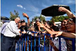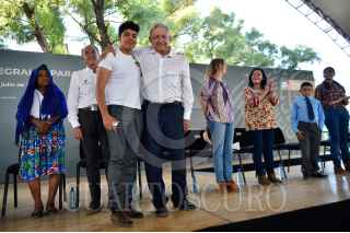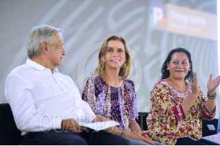 RIO VERDE, SAN LUIS POTOSÍ, 19JULIO2019.- Andrés Manuel López Obrador, Presidente de México en Programas Integrales de Bienestar en Rio Verde, San Luis Potosí. Lo acompañan Juan Manuel Carreras López, Gobernador de San Luis Potosí; María Luisa Albores González, Secretaria de Bienestar y Beatriz Gutiérrez Müller, Presidenta honoraria del Consejo Asesor Honorario de la Coordinación Nacional Memoria Histórica y Cultural de México. FOTO: PRESIDENCIA /CUARTOSCURO.COM