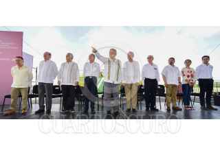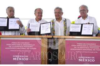 TAMUÍN, SAN LUIS POTOSÍ, 20JULIO2019.- Este día Andrés Manuel López Obrador, Presidente de México, encabezó la Firma de Convenio para el Desarrollo de la Huasteca Potosina en el Aeropuerto Nacional de Tamuín, San Luis Potosí. FOTO: PRESIDENCIA /CUARTOSCURO.COM