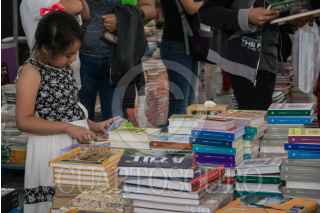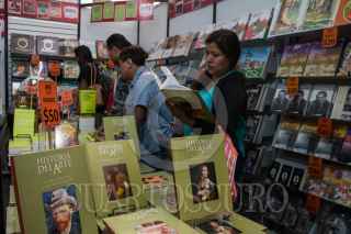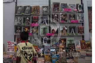 CIUDAD DE MÉXICO, 20JULIO2019.- Personas continúan asistiendo al 13 Remate de Libros de la Ciudad, ubicado en la explanada del Monumento a la Revolución. Se cuenta con la participación de más de 200 expositores y 700 sellos editoriales, con precios que alcanzan entre el 50 y 80 por ciento de descuento.En la imagen el stand 73 donde se pueden encontrar libros y revistas de la Agencia Cuartoscuro. FOTO: ANDREA MURCIA /CUARTOSCURO.COM