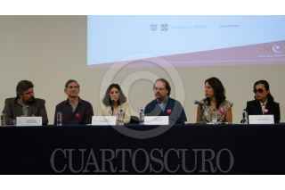 CIUDAD DE MÉXICO, 22JULIO2019.- José Díaz, Lorena Peugnet, Raúl, Antequera y Shino Watabe, encabezaron, la conferencia de prensa en la que se dio a conocerlos pormenores de la IV Jornadas y Tercer Festival Música y Ceguera: sonido, tacto y movimiento en la sala Manuel M. Ponce del Palacio de Bellas Artes. FOTO: ROGELIO MORALES /CUARTOSCURO.COM