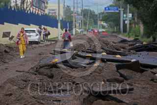TLAJOMULCO DE ZÚÑIGA, JALISCO, 22JULIO2019.- La tarde de ayer una intensa lluvia en el Bosque de la Primavera ocasiono el deslave de los arroyos La Culebra y la Colorada causando daños materiales en algunos domicilios, negocios y vialidades, esto a lo largo del Boulevard Bosques de Santa Anita en la colonia con Santa Anita. FOTO: FERNANDO CARRANZA GARCIA / CUARTOSCURO.COM