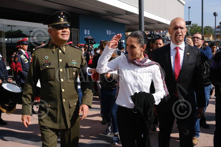 CIUDAD DE MÉXICO, 22JULIO2019.- Martín Salvador Morfín Ruiz, comandante de la Primera Zona Militar; Claudia Sheinbaum, Jefa de Gobierno, y Salvador Guerrero Chiprés, presidente del Consejo Ciudadano para la Seguridad y Justicia de la Ciudad de México, al finalizar la entrega de las patrullas nuevas que vigilarán las inmediaciones de la alcaldía Miguel Hidalgo. FOTO: GRACIELA LÓPEZ /CUARTOSCURO.COM