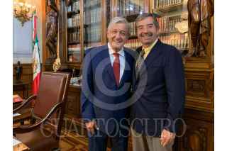 CIUDAD DE MÉXICO, 22JULIO2019. - Andrés Manuel López Obrador, Presidente de México, y Juan Ramón de la Fuente, embajador de México ante la Organización de Naciones Unidas, celebraron la postulacion de México para que presida el Consejo de la Seguridad de la ONU, esto durante un mensaje desde Palacio Nacional. FOTO: PRESIDENCIA /CUARTOSCURO.COM