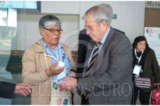 CIUDAD DE MÉXICO, 23JULIO2019.- Un capitalino le entregó folletos a Jorge Alcocer Varela, secretario de Salud Federal,al termino de la inauguración del 37 Congreso Nacional de Pediatría, el cual se realizó en el World Trade Center. FOTO: GRACIELA LÓPEZ /CUARTOSCURO.COM