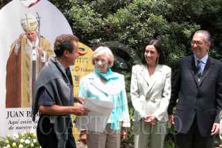 MEXICO D.F. 28JUNIO2005.- En las instalaciones de la fundacion Azteca, Ricardo Salinas Pliego en compañia de su esposa entrego reconocimientos a los escultores participantes del concurso de la estatua de Juan Pablo II. FOTO: Fernando Sanchez/CUARTOSCURO.COM