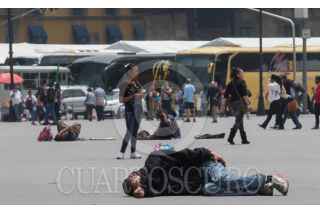 CIUDAD DE MÉXICO, 24JULIO2019.- Un hombre duerme placidamente en la plancha del zócalo, en donde cientos de campesinos mantienen un plantón. FOTO: MOISÉS PABLO /CUARTOSCURO.COM