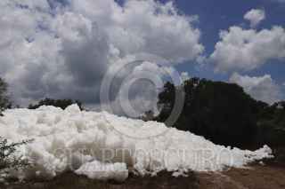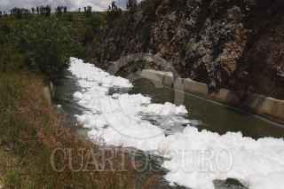 PUEBLA, PUEBLA, 24JULIO2019.- Continúa la acumulación de espuma tóxica en el dren de Valsequillo, la cual fuera el principal factor de la desaparición de un hombre en días pasados. FOTO: MIREYA NOVO /CUARTOSCURO.COM