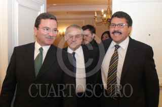 MEXICO, D.F., 29JUNIO2005.- Mariano Palacios Alcocer, secretario técnico del PRI, Juan José Rodríguez Prats, PAN y Ricardo Monreal, PRD, durante la mesa Más Alla del 2006: El Futuro Político de México en el marco The Economist Conferences, realizado en un hotel de Av. Reforma. FOTO: Moisés Pablo/CUARTOSCURO.COM