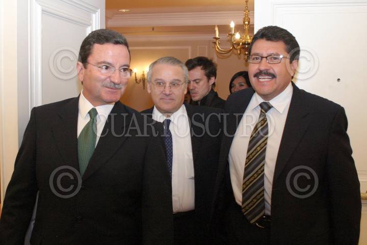 MEXICO, D.F., 29JUNIO2005.- Mariano Palacios Alcocer, secretario técnico del PRI, Juan José Rodríguez Prats, PAN y Ricardo Monreal, PRD, durante la mesa Más Alla del 2006: El Futuro Político de México en el marco The Economist Conferences, realizado en un hotel de Av. Reforma. FOTO: Moisés Pablo/CUARTOSCURO.COM