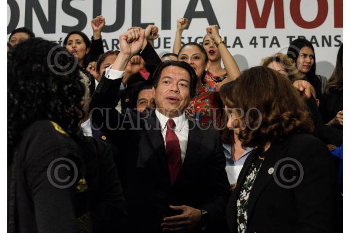 CIUDAD DE MÉXICO, 25JULIO2019.- La diputada Geraldine Ponce toma unas fotografías con su celular durante la conferencia de Mario Delgado en la que presentó la consulta “13 Desafíos para que siga la 4ta Transformación” rumbo a la renovación de Morena. FOTO: MARIO JASSO /CUARTOSCURO.COM