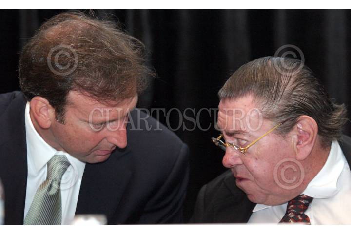 MEXICO, D.F., 29JUNIO2005.- Antonio de la Garza, embajador de Estados Unidos de América y Gilberto Rincón Gallardo, durante la presentación de las Políticas y Prácticas Laborales Relacionadas al VIH/SIDA del Consejo Nacional Empresarial sobre SIDA (CONAES). FOTO: Moisés Pablo/CUARTOSCURO.COM