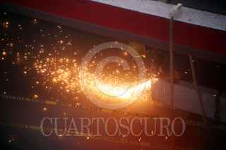 CUERNAVACA, MORELOS, 26JULIO2019. Falta muy poco para que termine la construcción del edificio principal de la Universidad Autónoma del Estado de Morelos, el cual resultó dañado por el sismo del pasado 19 de septiembre del 2017. En la imagen soldadores y albañiles trabajan en el diez por ciento que falta para concluir la obra. FOTO: MARGARITO PÉREZ RETANA /CUARTOSCURO.COM