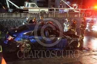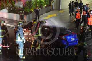 CIUDAD DE MÉXICO., 27JULIO2019.- Cinco personas resultaron lesionadas por quemaduras, al incendiarse el vehículo en el que viajaban por Periférico a la altura de Calle 4 en la colonia San Pedro de los Pinos. FOTO: LUIS CARBAYO /CUARTOSCURO.COM