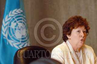MEXICO, DF 29JUNIO2005.- La alta comisionada de Naciones Unidas para los Derechos Humanos Louise Arbour durante la conferencia ofrecida en la sede de la Secretaria de Relaciones Exteriores. FOTO: Miguel Dimayuga/CUARTOSCURO.COM