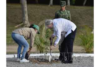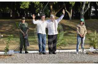 MINATITLÁN, VERACRUZ, 27JULIO2019.- Andrés Manuel López Obrador, presidente de México, y Juan Orlando Hernández, presidente de Honduras, durante su participación en Plan de Desarrollo Integral “Sembrando Vida”. FOTO: MARIO JASSO /CUARTOSCURO.COM
