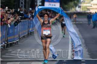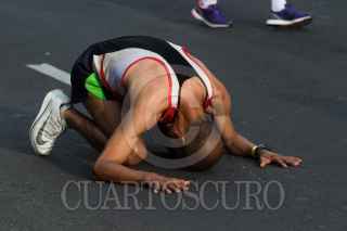 CIUDAD DE MÉXICO, 28JULIO2019.- Un corredor bañado en sudor tras correr los 21 kilómetros del Medio Maratón BBVA, que partió del Monumento del Caballito al Ángel de la Independencia. FOTO: MOISÉS PABLO /CUARTOSCURO.COM