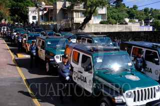 CIUDAD DE MÉXICO, 28JULIO2019.- Claudia Sheinbaum, jefa de Gobierno y Octavio Romero Villaseñor, alcalde de Milpa Alta, saludaron a los vecinos al finalizar la entrega de 30 nuevas patrullas de la policía, la cual se realizó en la explanada Villa Milpa Alta. FOTO: GRACIELA LÓPEZ /CUARTOSCURO.COM