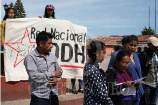SAN CRISTOBAL DE LAS CASAS, CHIAPAS, 29JULIO2019.- Integrantes del Comité Popular en Defensa d los Derechos Humanos y diferentes organizaciones realizaron una conferencia de prensa en la Plaza de La Paz en la cabecera de este municipio para informar a la población y convocar a la caravana Rompiendo el cerco policiaco militar, el cual tiene por objetivo documentar y constatar las consecuencias que provoca la militarización en la region de Ocosingo, particularmente contra el Ejido Río Florido perteneciente al Frente Nacional de Lucha por el Socialismo (FNLS). FOTO: ISABEL MATEOS /CUARTOSCURO.COM