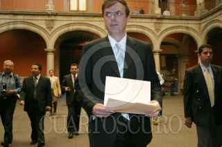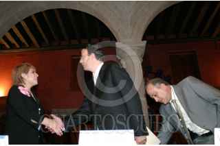 MEXICO, D.F. 30JUNIO2005.- Blanca Rosa Loyola, Marcelo Ebrad, secretario de desarrollo Social del D. F. y José Luis Mora Castro, director de Locatel durante la inauguración del foro Para hecer una Red Nacional de Centros Públicos de Atención Telefónica. FOTO: Nelly Salas/CUARTOSCURO.COM