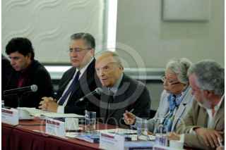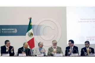 CIUDAD DE MÉXICO, 29JULIO2019.- Luis Raúl González Pérez, presidente de la Comisión Nacional de los Derechos Humanos; Alejandro Gertz Manero, Fiscal General de la República; Olga Sánchez Cordero, tiutlar de la Secretaria de Gobernación; Alejandro Encinas, subsecretario de Derechos Humanos federal y Jesús Peña Palacios, representante Adjunto de la Oficina en México del Alto Comisionado de las Naciones Unidas para los Derechos Humanos, durante una reunión en la que recibieron las recomendaciones de la Oficina en México del Alto Comisionado de las Naciones Unidas para los Derechos Humanos, con el objetivo de que el Estado mexicano mejore el Mecanismo de Protección para Personas Defensoras de Derechos Humanos y Periodistas. FOTO: SEGOB /CUARTOSCURO.COM