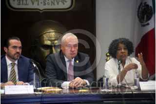 CUERNAVACA, MORELOS, 30JULIO2019. Pablo Ojeda Cárdenas, secretario de gobierno de Morelos y el jefe de la oficina de la gobernatura José Manuel Sanz acompañan a María Candelaria Ochoa Davalos, titular de la Comisión Nacional para Prevenir y Erradicar la Violencia Contra las Mujeres (CONAVIM) durante la 35 Sesión Ordinaria del Sistema Estatal Para Prevenir, Sancionar y Erradicar la Violencia contra las Mujeres. Se rumora Cuauhtémoc Blanco Bravo, gobernador del estado, salió de vacaciones sin informar a los otros dos poderes, pero según el jefe de la oficina de la gobernatura, el mandatario estatal simplemente no ha querido participar en eventos públicos. FOTO: MARGARITO PÉREZ RETANA /CUARTOSCURO.COM