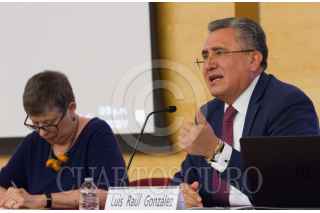 CIUDAD DE MÉXICO, 30JULIO2019.- Alejandro Encinas, Mariclaire Acosta, Luis Raul González y moderando Sergio Aguayo; en el debate Derechos Humanos en la 4T que se realiza en El Colegio de México. FOTO: VICTORIA VALTIERRA /CUARTOSCURO.COM