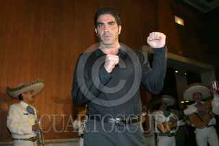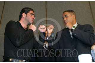 MEXICO, D.F. 30JUNIO2005.- Los boxeadores Jorge Kahwagi y Roberto Coelho al termino de la conferencia de prensa que ofrecieron a los medios de comunicación con motivo de su proximo encuentro. FOTO: Nelly Salas/CUARTOSCURO.COM