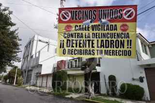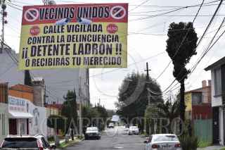 METEPEC, ESTADO DE MÉXICO, 31JULIO2019.- Vecinos de la Colonia Casa Blanca colocaron matas para inhibir la delincuencia q se ha presentado en la zona, advirtiendo que se está vigilando el lugar. FOTO: CRISANTA ESPINOSA AGUILAR /CUARTOSCURO.COM