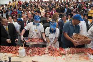 CIUDAD DE MÉXICO, 31JULIO2019.- Se llevo a cabo la inauguración de la 16 Feria de la Torta en la explanada de la alcaldía Venustiano Carranza, en donde se elaboró la torta más grande del mundo con una longitud de 72 metros, un peso de más de 900 kilogramos, 100 sabores y tipos de relleno. Además la muestra gastronómica reúne a más de 100 expositores nacionales e internacionales. FOTO: MARIO JASSO /CUARTOSCURO.COM